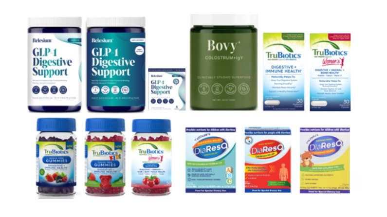 The company develops patented formulations, including its BovIgY™ colostrum‑egg technology, that it commercializes under category‑leading brands such as Relesium™, Bovy+™ and DiaResQ®. The Company also sells an established probiotics brand called Trubiotics.